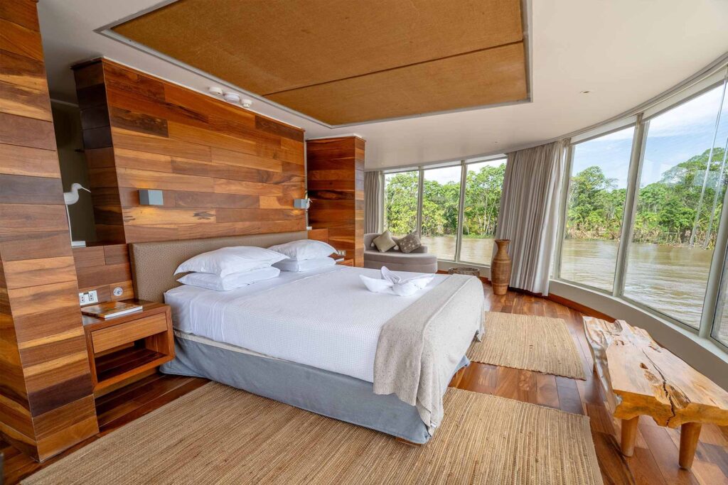 Large windows are one of the most valuable features in any Amazon cruise cabin. They allow you to stay visually connected to the environment at all times, even when resting.